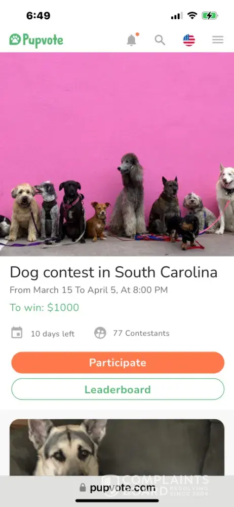 As a concerned individual and a lover of fair competitions, I must share my disappointing experience with Pupvote. It's a platform that claims to provide a fun way for dog owners to compete against each other - sounds like a good idea, right? Unfortunately, my experience was far from enjoyable.