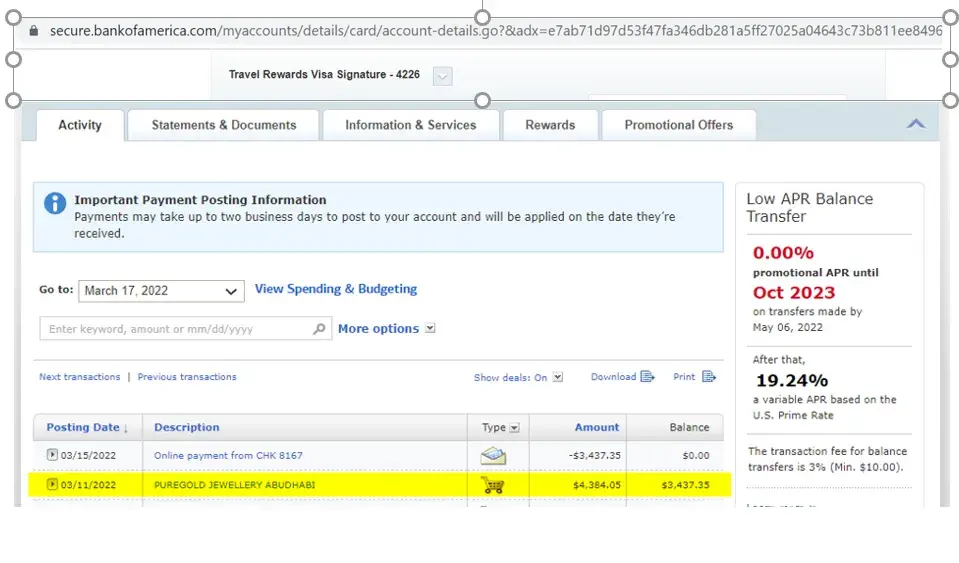 For two items, we have paid AED16100 which is $4384 USD using Bofa account.