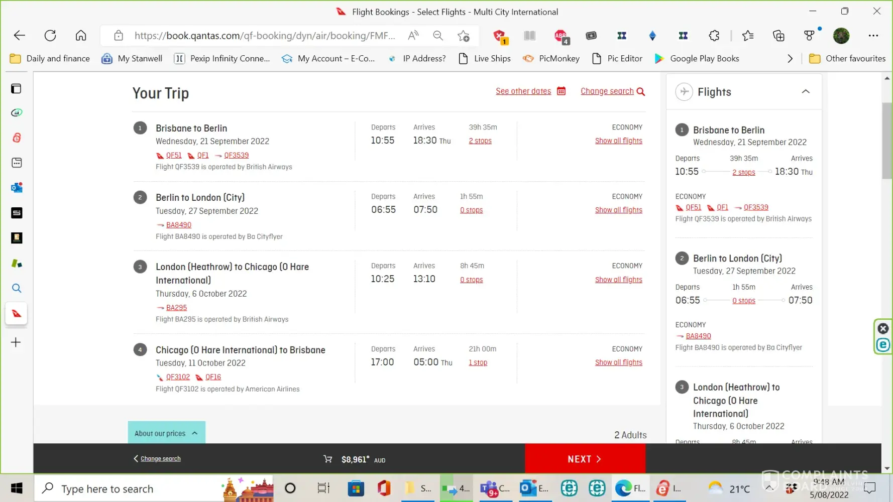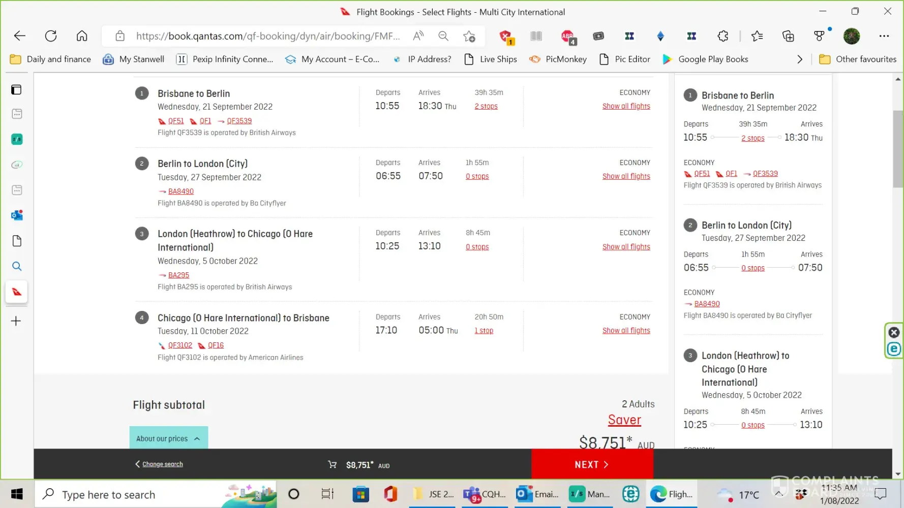 My partner and I are planning a trip to Europe (Germany, UK) and the US later this year. For a while, I checked the Qantas website for flight and options and I now have a pretty good idea what flight I want.