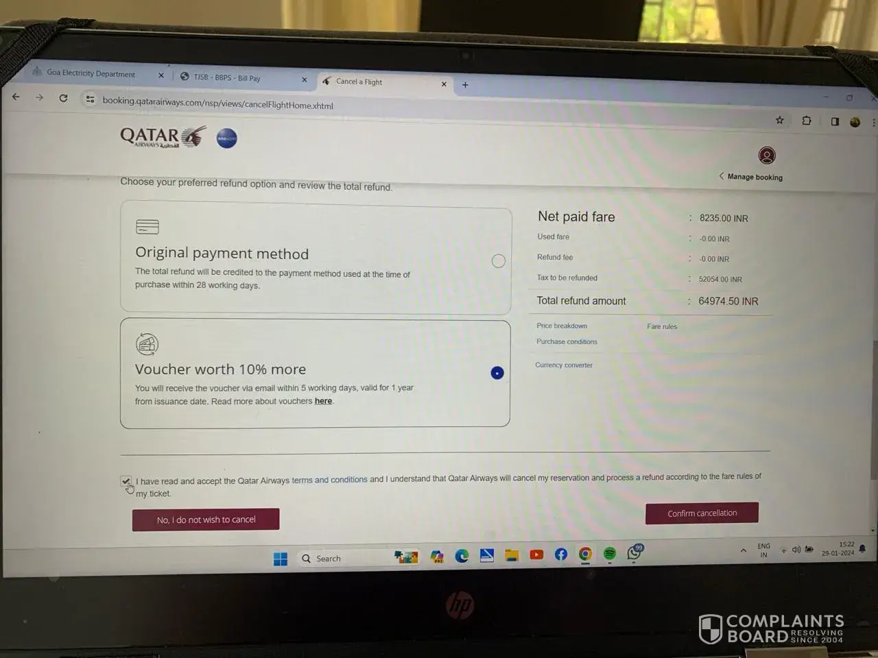 I had purchased a ticket for travel on Qatar Airways but due to an emergency I had to postpone my trip. When I went on their website to manage my bookings I was given the option of a refund or voucher. Since my plans were on to travel at a later date, I opted for a voucher which showed me the voucher amount of INR. 64974.50. When I received my voucher on 31st January 2024, I was shocked to see that only INR. 43390.00 was given to me. I immediately contacted customer care and informed them about the issue then they created a case ref: CAS-2739232-T3F6X5 and have been waiting for a reply from them issuing me with the correct amount of the voucher which was allocated to me but till today I have not received a reply from them. I feel I have been cheated by Qatar Airways by providing me with wrong information and not giving me the voucher with the amount specified by them. If I knew that I would be losing so much money, I would never have cancelled my ticket. I think I may have to approach the Consumer Court now with this matter in order that they pay me the correct dues.