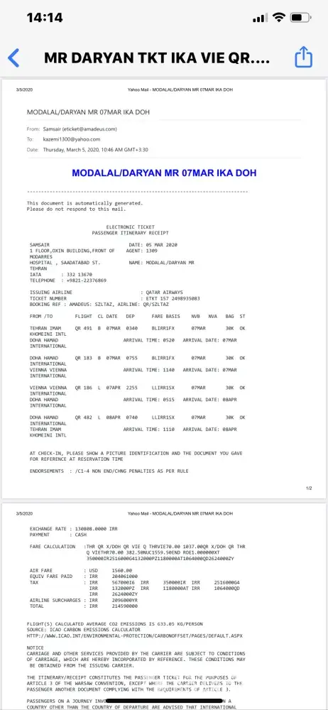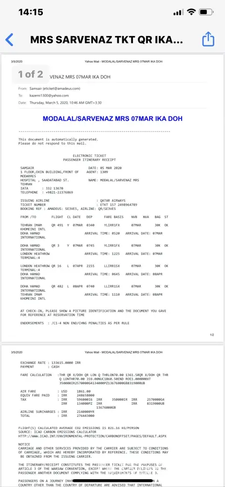 Qatar Airways #2653512 ticket ref : pm7blk