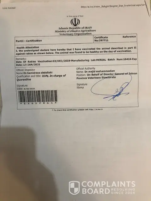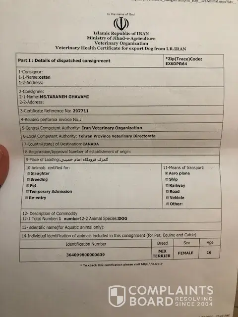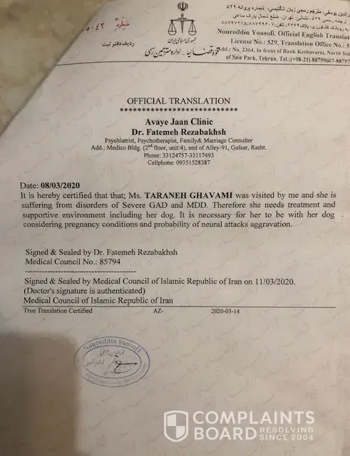 I had a flight from Tehran to Montreal on 5th of April 2020 with my pregnant wife and her emotional dog. my Email address is : aliakbari.[protected]@gmail.com