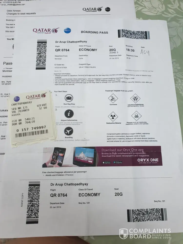 Attached herewith picture of my boarding pass denied from Qatar and boarding pass able to travel from Thai Airways.