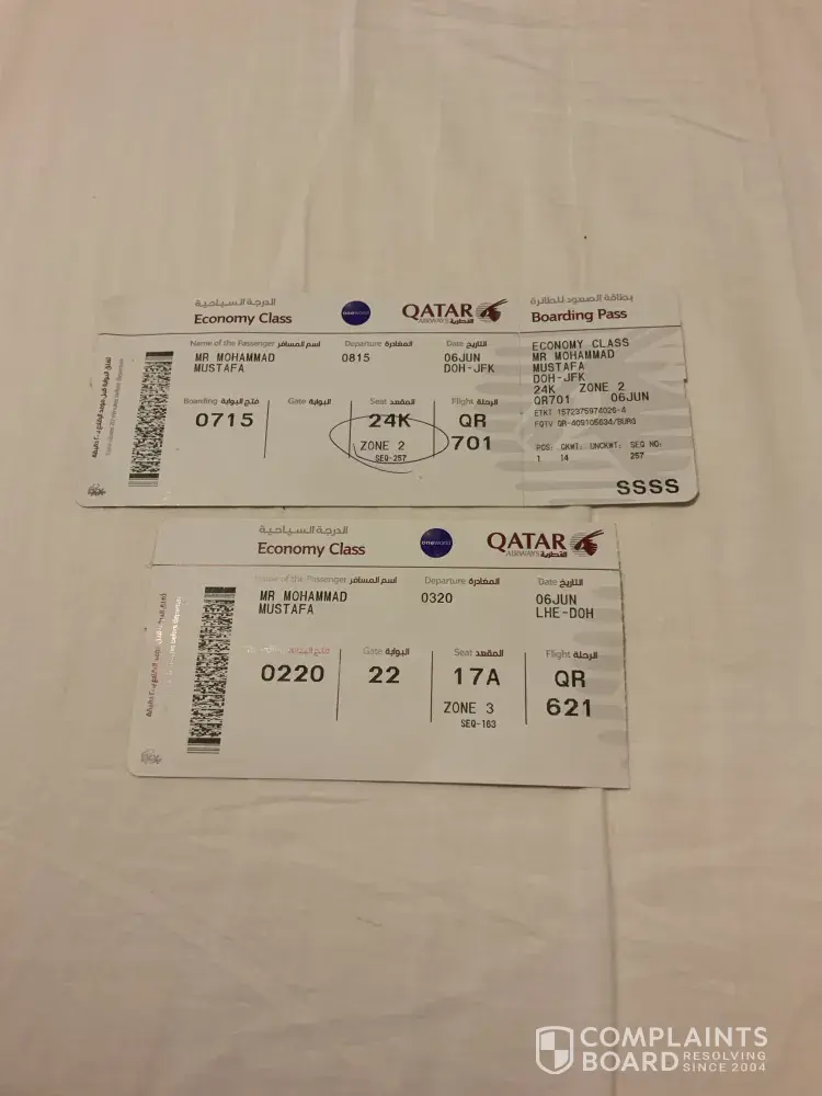 Ok, I can understand documents need to be checked but what happened to me was more than just a document check. The first crew member that made me print out new boarding passes at the kiosk did check the documents and if the person at the gate had only checked our passports that is understandable as I have flown many hundreds of times and I am used to having my passport checked at the gate. What I did not understand is why I was asked what is obviously SECONDARY SECURITY SCREENING questions. It is not normal to have someone ask all the questions she asked AND to have to show my Qatar ID card at the boarding gate. This has never happened to me since I have been using Qatar Air back in 2003. Never. I had attached the boarding passes we had in hand and sent a reply back to Mr. Ivan, only to be told AGAIN that the delay was my fault because I failed to do a proper check in at the check in counter like all the other passengers.