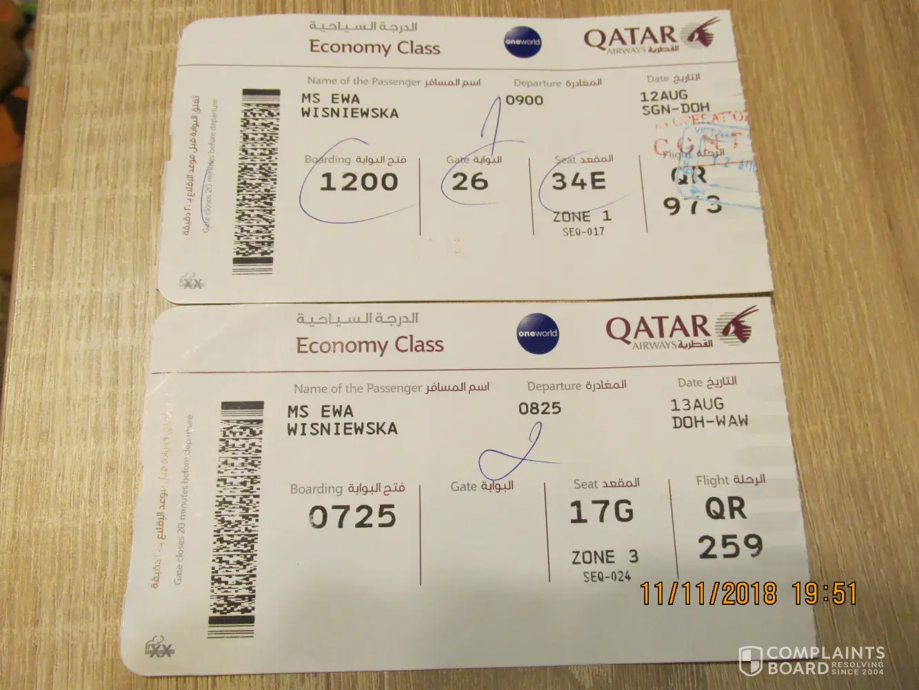 I want to do a complaint about my last trip ( Bangkok trip ) through Doha, while is my last destination was to Saigon ( Vietnam )...