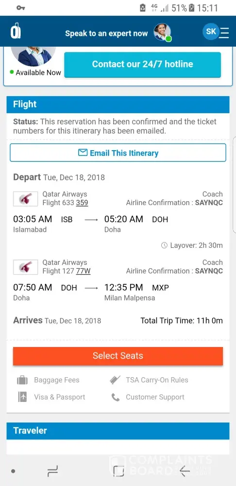 i was travilling from lahoore(pakistan) to doha to najaf on dated 14 seoptember