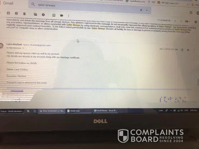 Qatar airways stalled 3 weeks to add my husband passport and our marriage certificate not to add to our account his travel miles from Amman - Doha - Mozambique in business class.