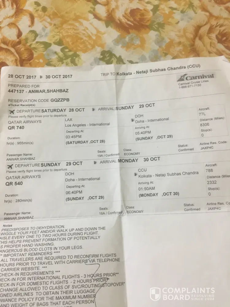 We have incurred several costs for the travel delays and baggage delays, we were not even compensated well at Doha airport.