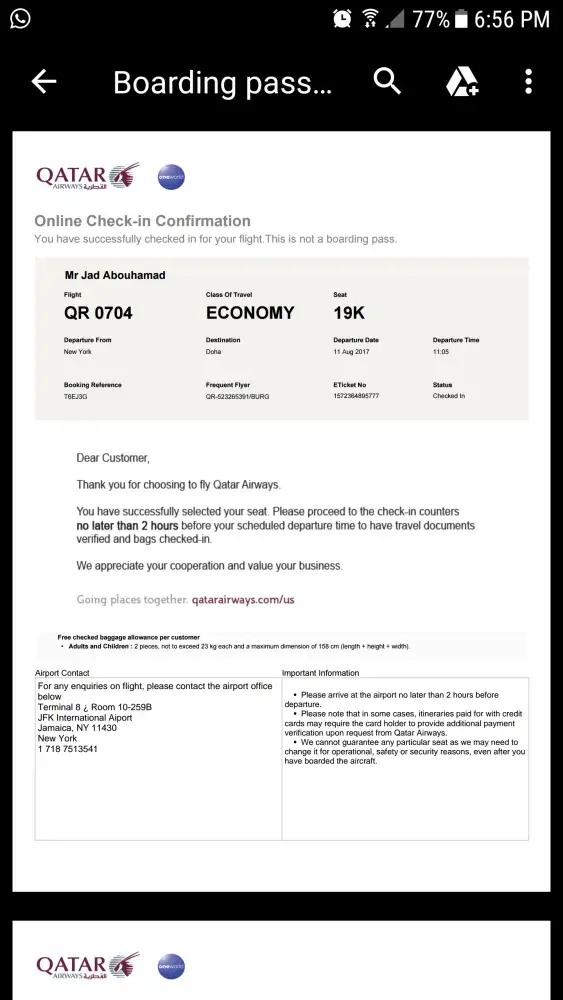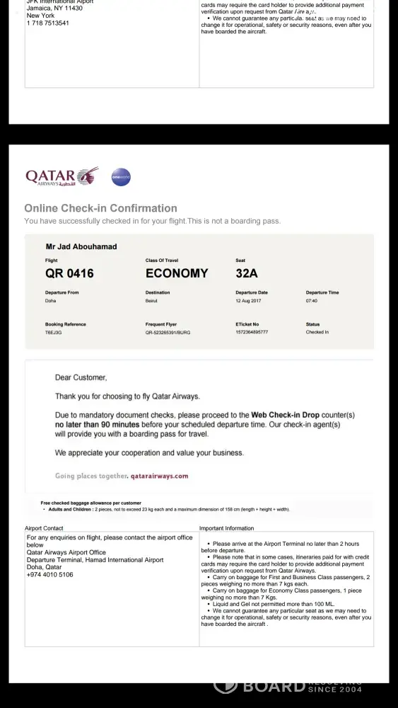I had to pay extra $290 for that flight and for me to avoid a layover in Doha airport and to get to Beirut early Saturday and on time for my pre-scheduled plans.