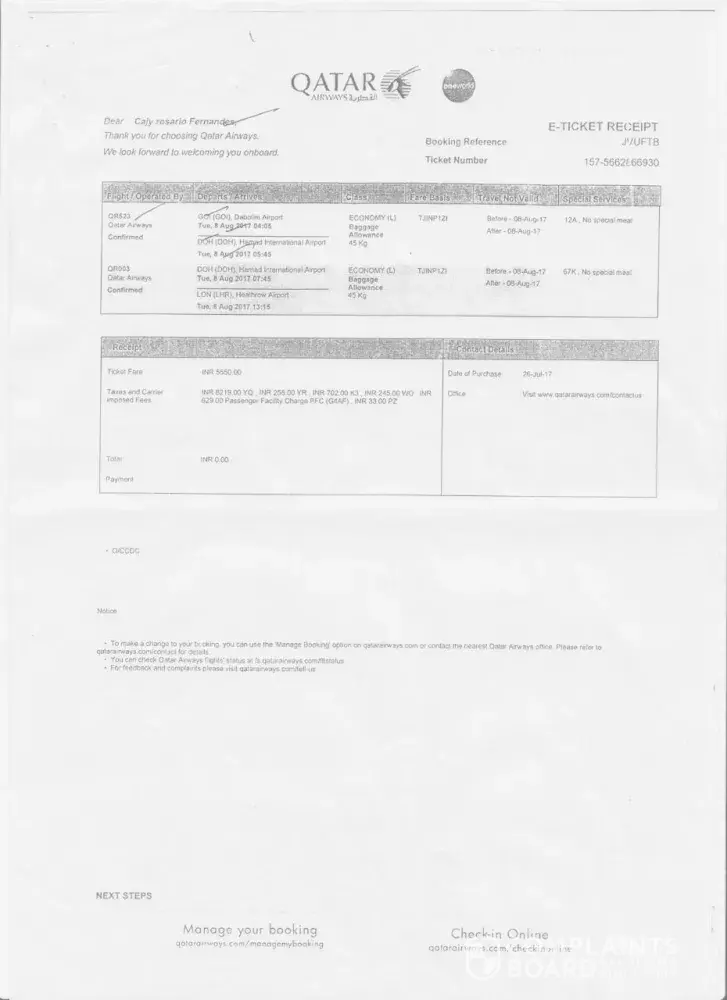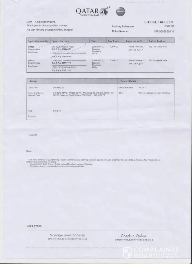 Qatar Airways Complaints Page 29 of 38