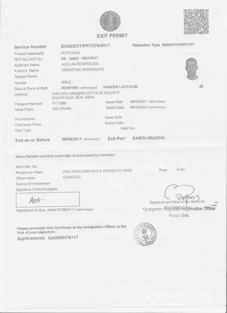 Exit permit copy