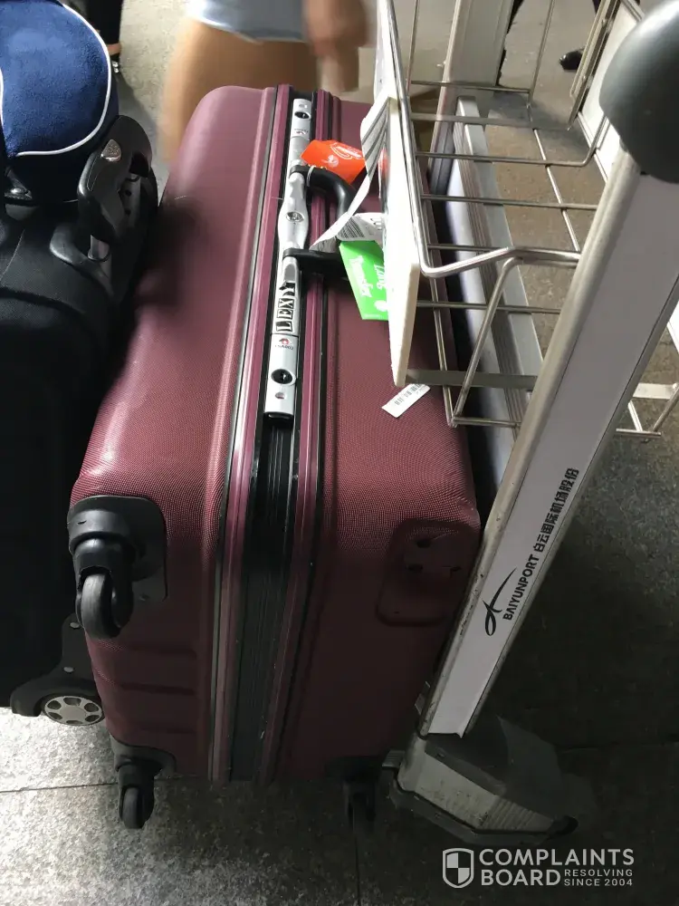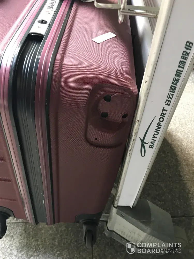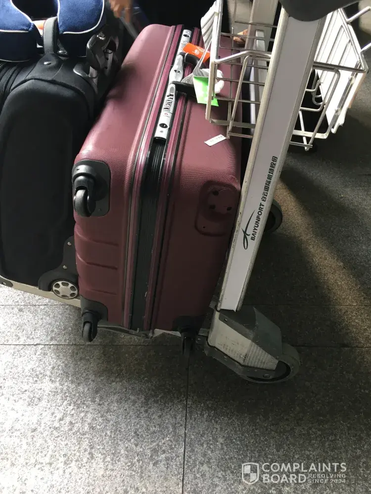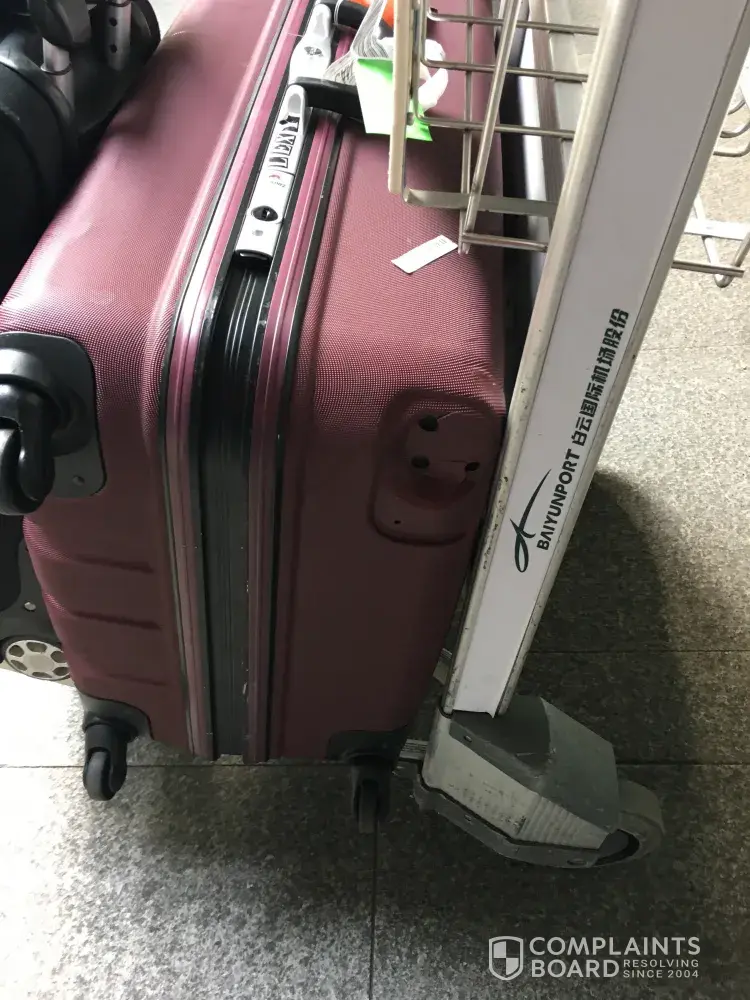 On arrival at Guangzhou I realised my baggage has been damaged. It is a four wheel travel case and one of the wheels had been broken. Completely missing.
