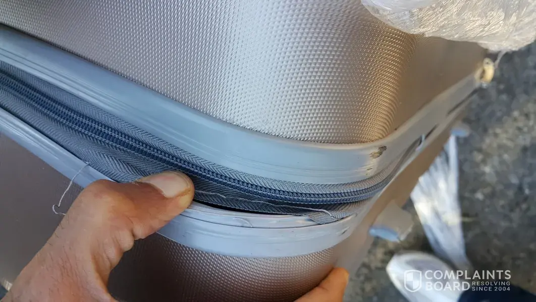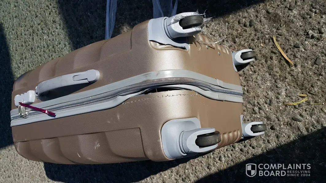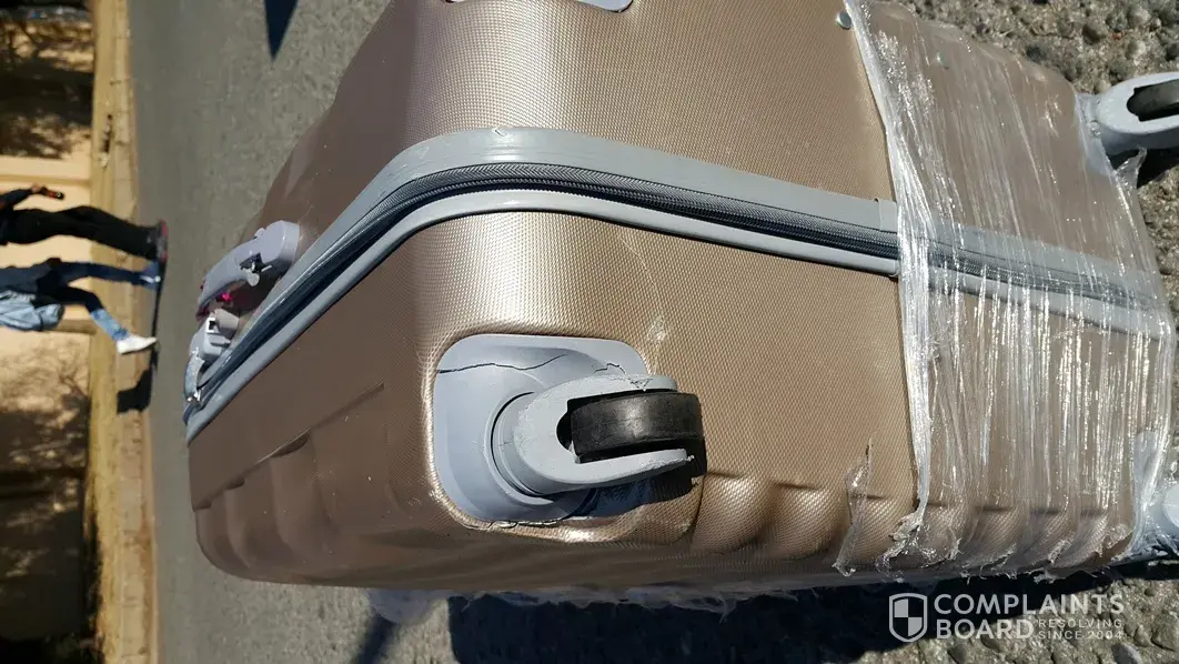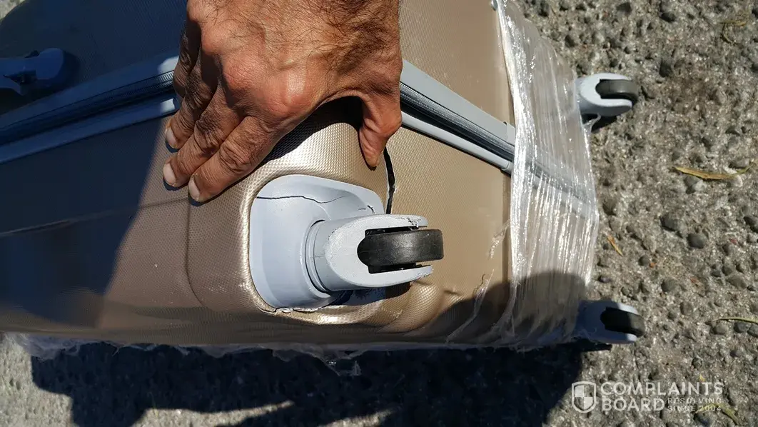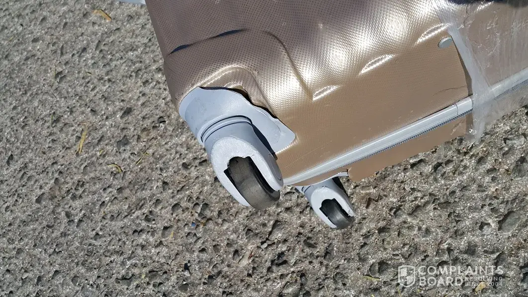 I have attached a few pictures of the case with the broken wheel I took at the airport on arrival.