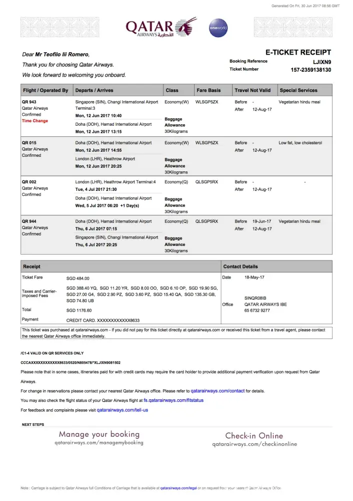I still continue this booking and work it myself because this is what I think is the best for me and I don't want to messed up again calling your customer service hotline that puts me on hold for more than 20 to 30 mins and some released my calls. June 12, From Singapore I flew all the way to London via Doha. Prior to my flight on July 4 from London to Doha, 5 or 6 days ago I received an email that my flight is being cancelled. Of course, The email is about asking me to reschedule my flight but options were only an earlier flight so I need to change my plans on that day. I responded to the email to call my roaming number so I could clarify and make the right arrangement but sadly no calls were made and replied my email that I have to call the your customer service hotline for reservation. Not that I don't like your airline but changing my flight is completely insane, like supposedly I should be able to get the Q+ offer because all my flights booked under your airline. I’m frustrated because all the time I’ve been sending so much email or calling you is totally worthless. The time I consumed, the efforts I’ve done and the inconvenience caused wasn’t resolved, no compensation and has kept in silence. Come to think of it, I am having a vacation and you are causing so much problem of my time. So by far after traveling around the world this is my first flight which has been cancelled, never compensate me and the quality of customer service provided is very poor. So now I would humbly request for a refund of my expenses.
