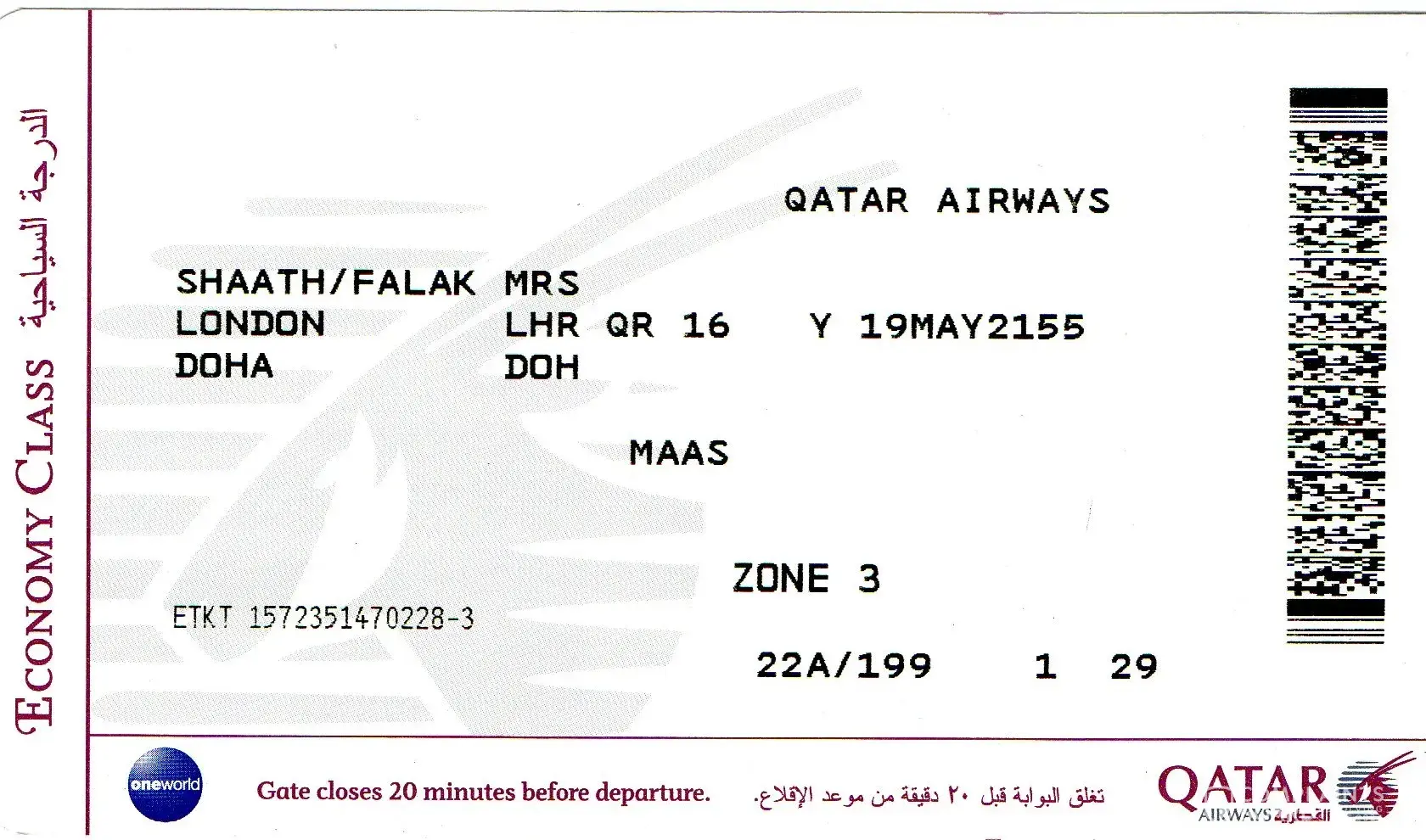 Keeping in view the reputation of Qatar Airways I have faced such horrible situation. Not only I got mentally upset, I lost my cell phone at the airport. I purchased the ticket online. Then I received an email for pre-arrival verification process of the card. I responded all the emails with all the things they requested. I got the status that your ticket has been confirmed. I got satisfied and got busy in other arrangements of the traveling.