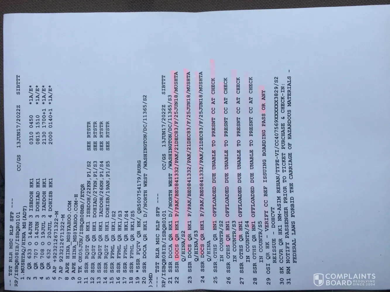 Already i sent a complaint online and i got a reply after already the date of my flight and that i have to pay.