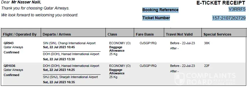 I usually don't complain about anything. I am always happy if an airline has the right way of helping and/or explainig a situation. The experience with Qatar Airways rates as the worst I have ever come across and I feel that my complaints and issues are valid.