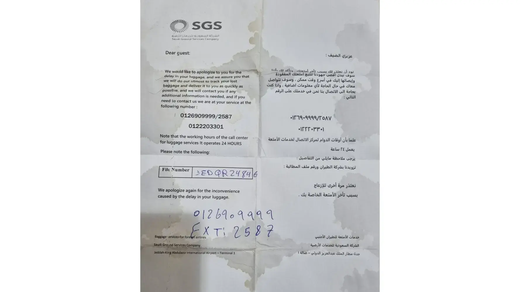 I have still not received my luggage as I was taken off to Hail at Around 01:00pm yesterday on 25.03.2023. I took a flight from Nepal-Kathmandu on 25.03.2023 with ticket confirmation number SCV87P at 02:15 AM. My flight was from Nepal Kathmandu then Doha and then Riyadh and then from Saudi Airlines from Riyadh to Hail(Saudi Arabia). As per instruction given from Nepal I should pick my luggage direct to my destination Hail-Saudi Arabia but upon reaching here in Hail I didn't find my luggage. Could you kindly support and give advice regarding this issue.