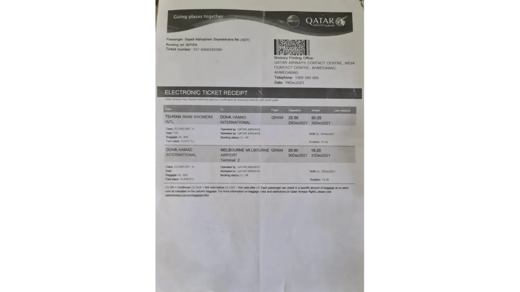 From: Doha To: Melbourne Airport On Wednesday 29 Dec 2021 Time: 20:50-18:20+1