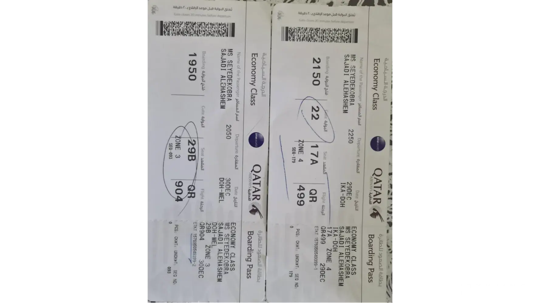 From: Tehran Imam Khomeini international air port To: Doha On: Wednesday 29 Dec 2021 Time: 16:40