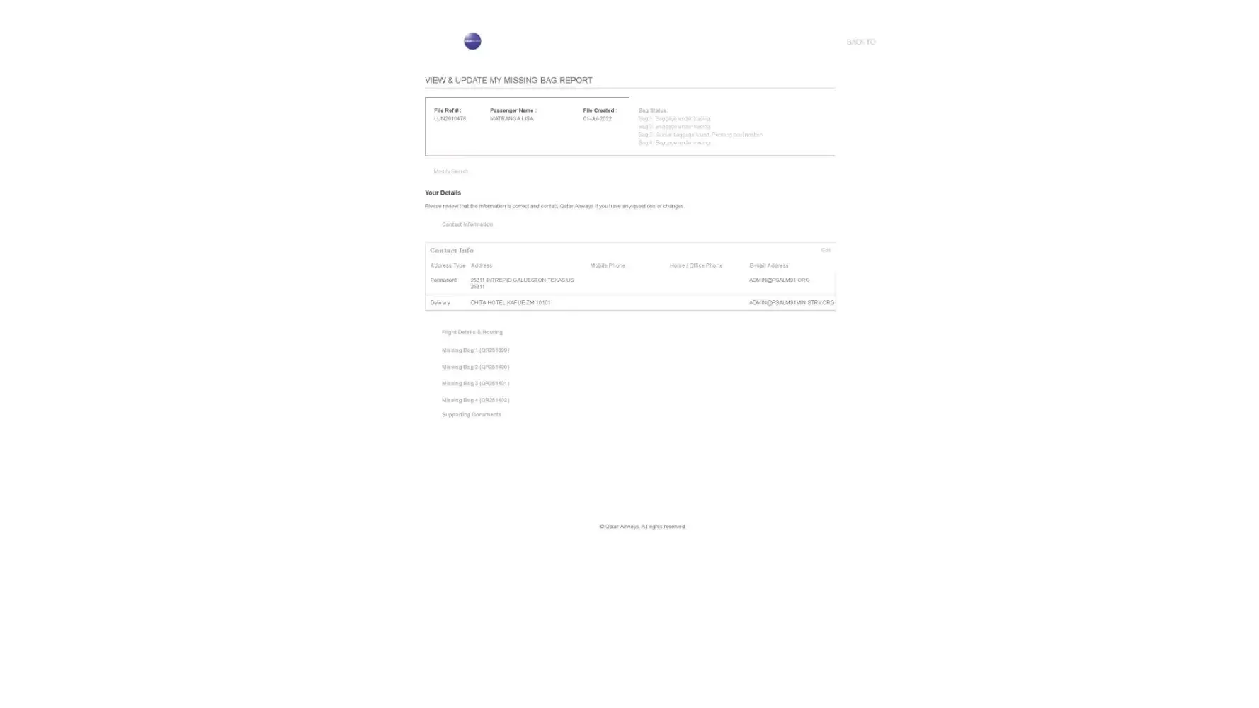 This is the third comment I have posted regarding this issue but for some reason number two has disappeared. I have still had no response from Qatar airways. What a terrible example of customer service. I have never seen worse to be honest. Qatar's policy seems to be to ignore issues in the hope that they will go away.