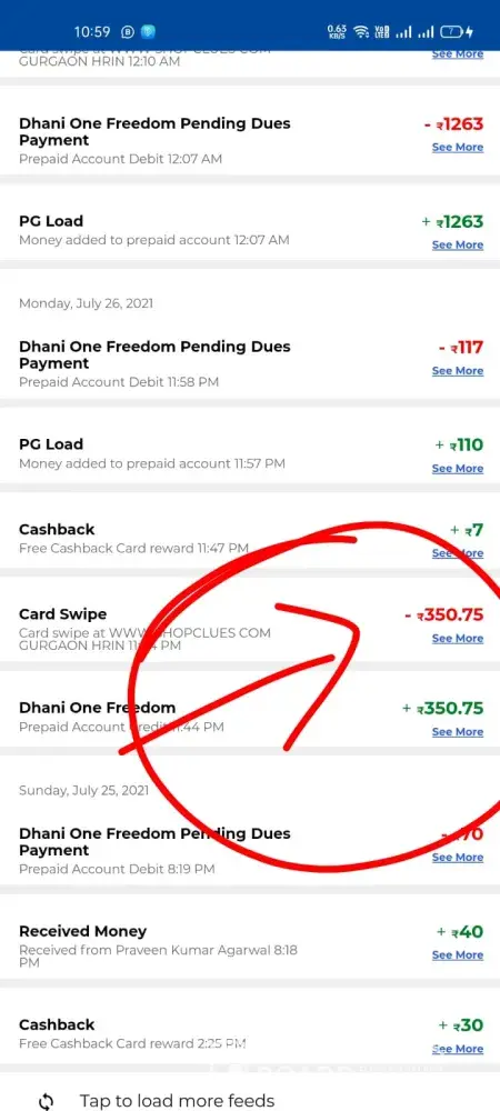 My issue is that, " I made a payment on 26th july 2021 via dhani wallet by Q0010 shopclues but payment is failed by you but amount is deducted on my account so please refund my amount of rupees ₹350.75. I enclosed a screenshot for your reference any question please contact me on [protected] for better explanation