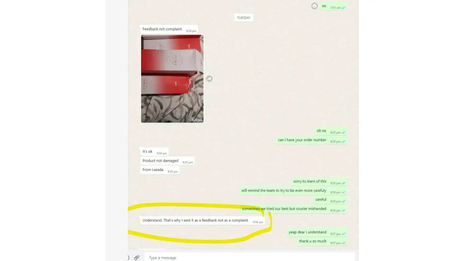 Below is the link for the product and I am also attaching screenshots of our WhatsApp conversion.