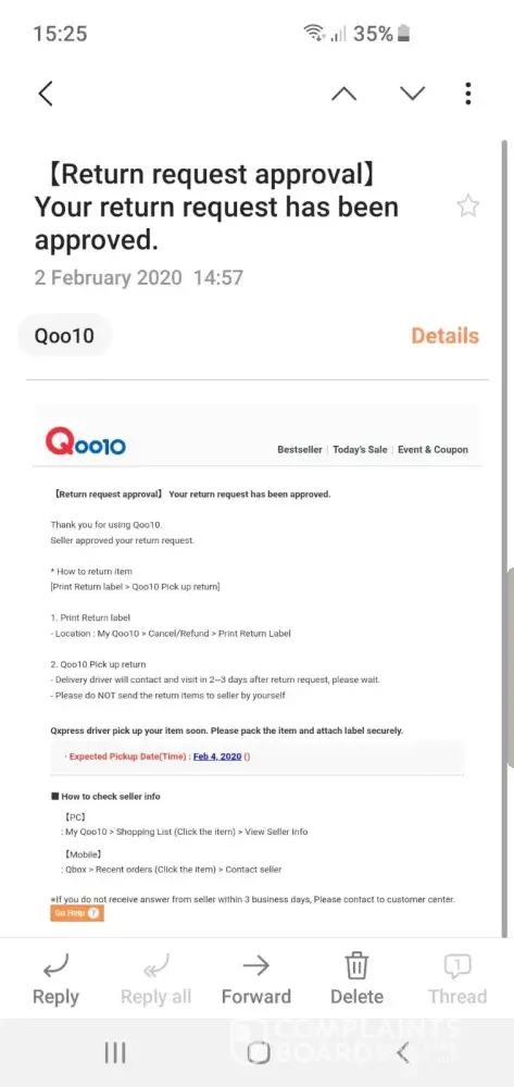 No news reply on Aug 19 asking whether Qoo10 collected back item. Etc etc. I ask for refund no reply.