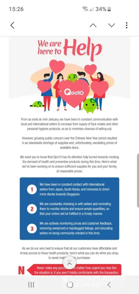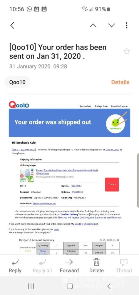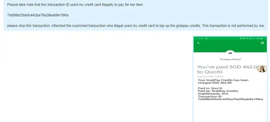 I had informed that a police report has been made but there was only a email reply from qoo10 (see attached) but no further follow up phone call. I am SHOCKED that Qoo10 went ahead with the transaction. I am very unhappy that this is how Q0010 treat a scam report reported by the victim of a social medial impersonation scam. Now i have to bear the cost of this irresponsible action by Qoo10. I would like to hear from the top management regarding the handling of this situation.