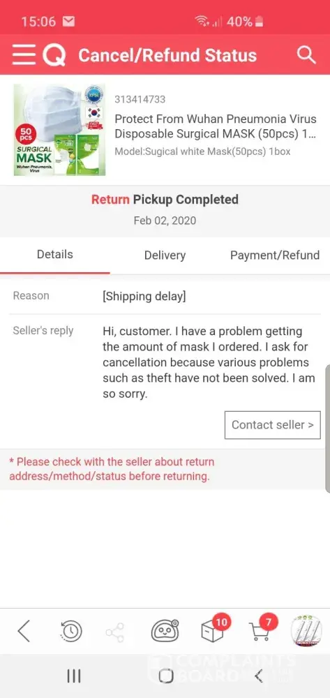 I ordered and paid for 2 boxes of surgical mask on 27 Jan 2020 under the seller Cosmo Junction and the system indicates that it was shipped on 1 feb. Today 7 Feb, the seller says it has shortage of mask and has to cancel my order.