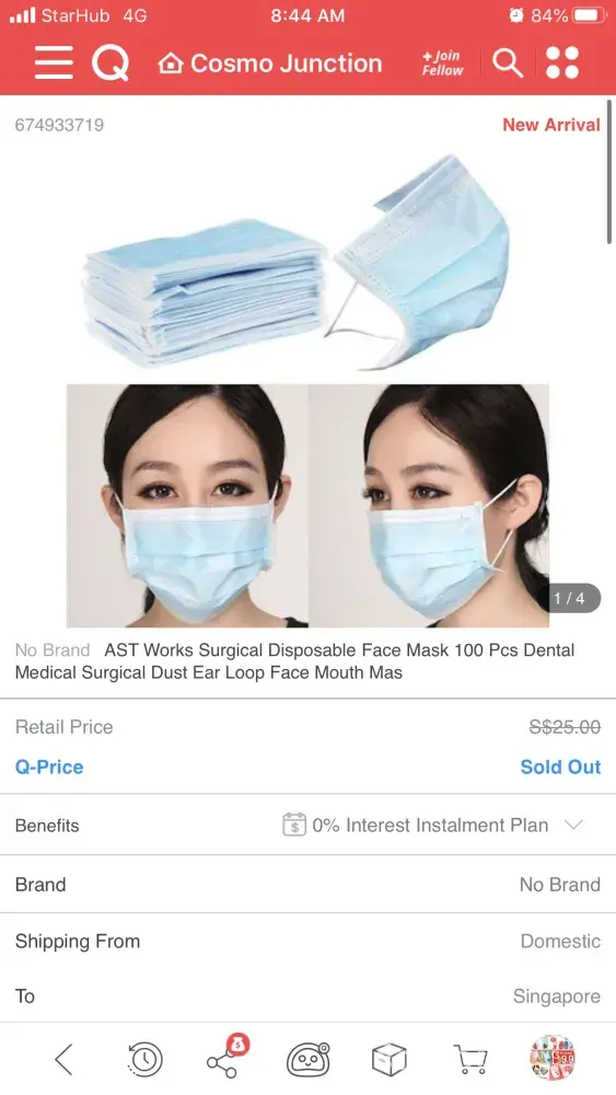 I placed an order (Ref No.[protected]) on 28Jan2020 for 8 boxes of surgical mask @$24.90 each. Subsequently, the supplier sent me an update that the items were shipped out on 31Jan2020. On 2Feb2020, they sent me a note cancelling the order. I noted that they were still selling the items @$29.90 each on 29 Jan2020 and on 1 Feb 2020 they were still selling it @$35.90 each. I do see why there are unable to fulfill my order. I strongly suspect that they were cancelling earlier confirmed orders that were committed at a lower price to fulfill orders that was sold at a higher price.