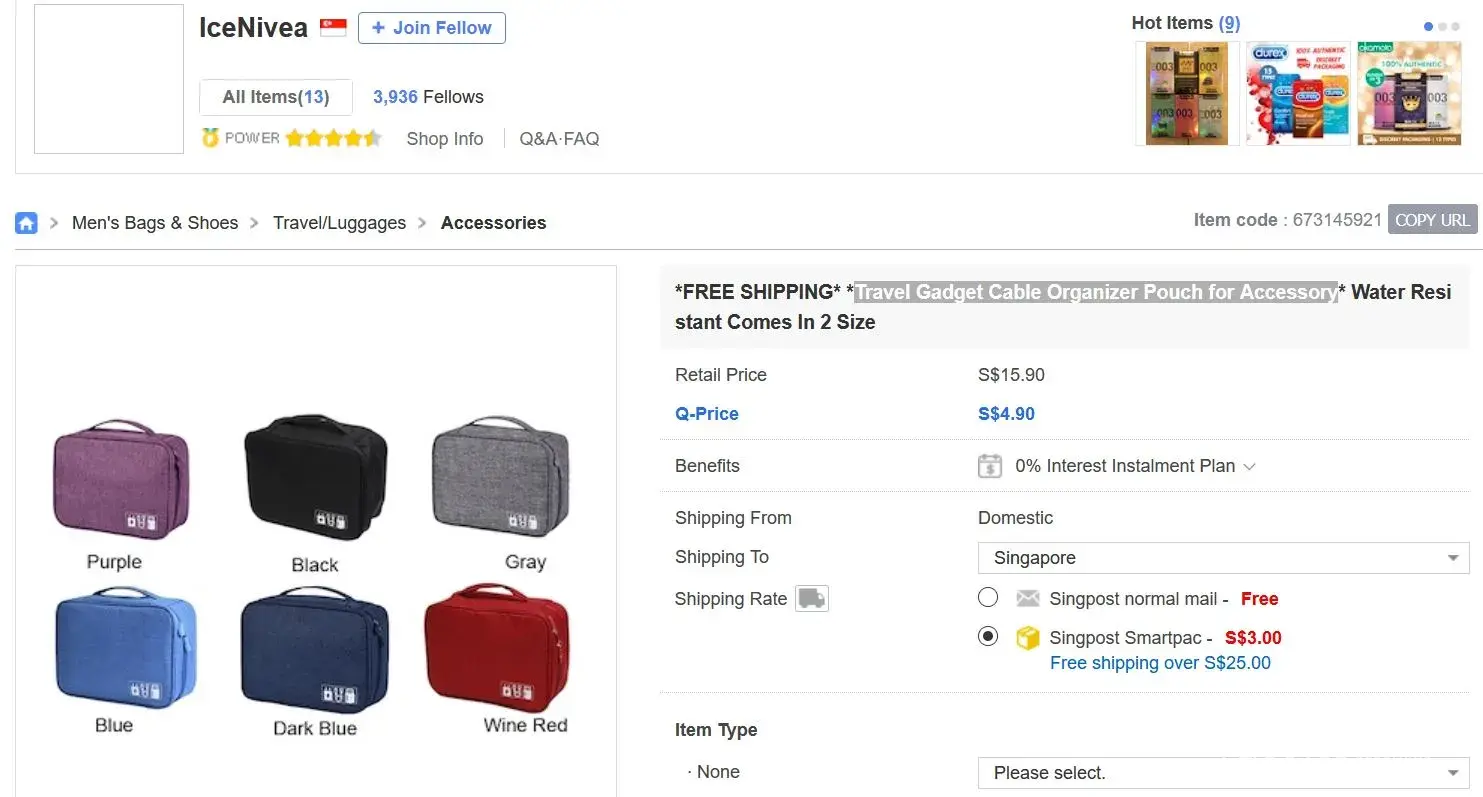 I find it necessary to bring to your attention such false advertising on Qoo10 website. With such advertising, the pricing shown as Q-Price becomes meaningless and useless for prospective buyers. This is because the Q-Price stated is not a true price for the products. The seller shows a "Low" Q-Price of S$4.90 to draw the customer but in reality the actual product price is S$7.90 or S$9.80 when you select the item. Notice that every item for selection has a + S$3.00 or S$4.90 additional cost that leads to the real selling price of S$7.90-S$9.80. So the Q-Price S$4.90 is meaningless since you can never buy the item at this price. A look around Qoo10 website shows this false advertising practice is prevalent throughout Qoo10. If such advertising practice continues then customers will not be able to trust whatever is stated in any advertisement i.e. we lose confidence since we will not know if the advertisement contains factual information. I like to shop at Qoo10 and hope that such false advertising practices are not allowed to continue. If the Q-Price is S$4.90 then one should be able to buy the item at S$4.90. If the actual purchase price is S$7.90 or S$9.80, then the Q-Price should show S$7.90 or S$9.80 or S7.90 + S$2.10 for the medium size one and not S$4.90 which is wrong. Please do not allow us to lose our confidence with what we read on Qoo10. Thank you.