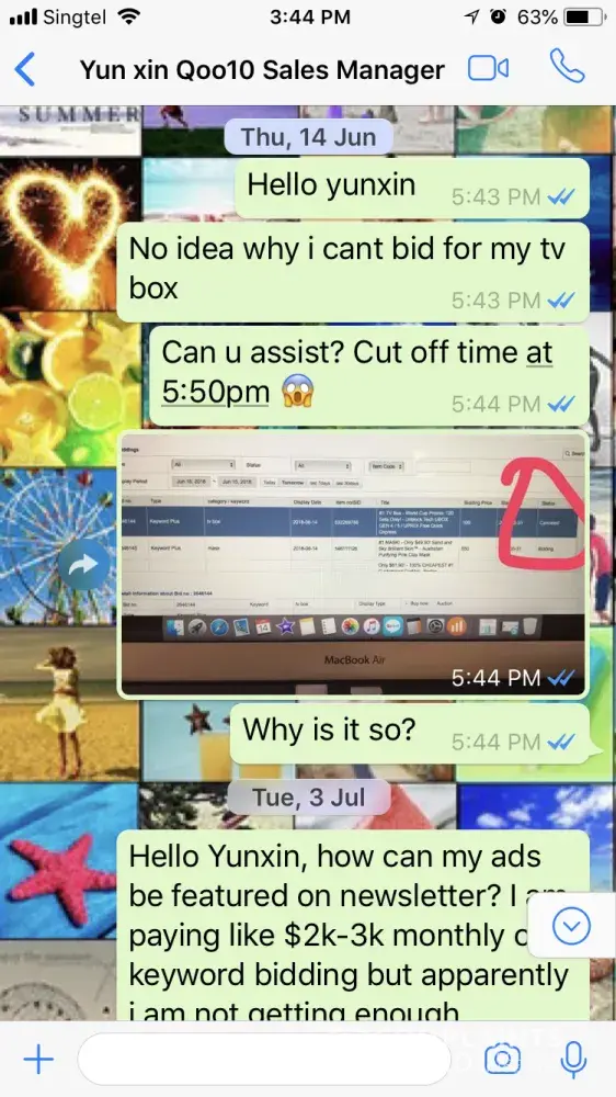 My company have been selling on Qoo10 Singapore for more than a year now. Monthly we spending quite a hefty sum just on qspecial and keywords bidding. After becoming an active power seller on Qoo10 we were assigned to Yun Xin (Account manager) since Nov 2017. However no help such as time sales / group buy etc support were render to us. We tried contacting you guys for a change of AM because we just cannot afford to wait 2 weeks - 2 months for a reply from the current AM. In our last WhatsApp conversation with Yun Xin. She refused to assist us on timesale/groupbuy and mentioned that a new AM is being assigned to us. So meanwhile we should just continue with our keywords bidding instead.