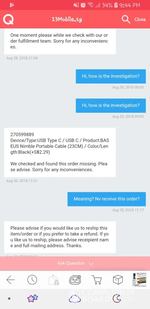 I ordered a pregnancy pillow and paid on the 7th of may. The supplier texted me the color of that pillow that I wanted was out of stock, I dont mind and chose another colour. Next, it was supposed to be delivered on the 25th of may. So I waited patiently. Now it's already 2nd of june and I received nothing just a stupid email telling me that my order has been delivered and asking me for feedbacks when I dont received a [censored]. And when I tried to track back there's no history! So frustrating! I have all the transaction details and I have all my order number and that email but strange.. There's no order history! And what is this complaints board for?! Will I get a refund?! Bloody scammers!