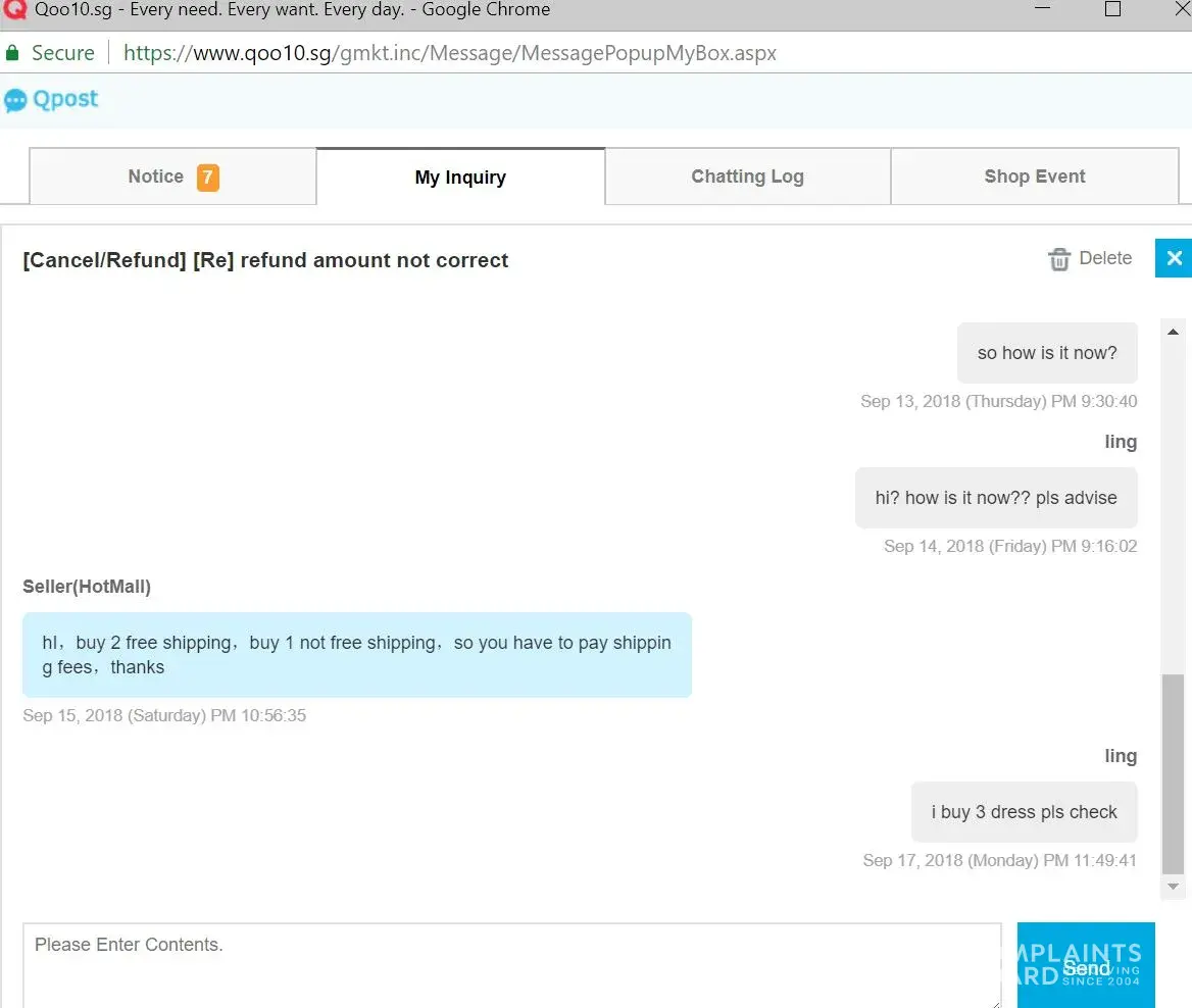 I have ordered a toner on 23rd April 18 via Qoo10 from this company named Cocoxx, last 2 letter xx was hidden for my protection. There was no notice received at all from this seller for a month regarding delayed delivery and I emailed on 25th May to informed them that I have not received the item. They replied they will check and reply ASAP. But I waited till 6/6 still no update from the seller as I submit non item received claim and ask the seller to refund the money back if they can't deliver. They replied they have informed Qoo10. I waited and follow up on the 8th June still no refund notice. So I submit review on the seller website to warn the other buyers not to get cheated for this due to money paid item no received and no refund on 12/6. The seller warned me for my genuine review and remove those reviews and informed to file police report and send legal letter to me for my defamation! I want to complaint here what is the Right of being a Buyer in Qoo10 for such a seller and my genuine reviews? What is Qoo10 action taken for this kind merchant selected? Qoo10 indeed took a week plus after my call on the 14/6 to ask for refund my money back, whereby I have submitted my non received claim since 25th May, why Qoo10 took so long for simple refund and role acting as a middle party?