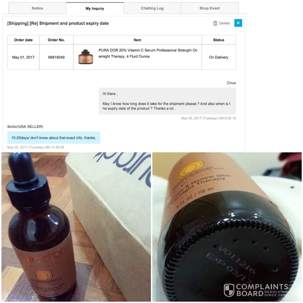 Then finally the vitamic face serum pura Dor finally arrived and I almost wanted to give a good review then turned around the face serum expired on the March 2017 and now it's already MAY 2017 !