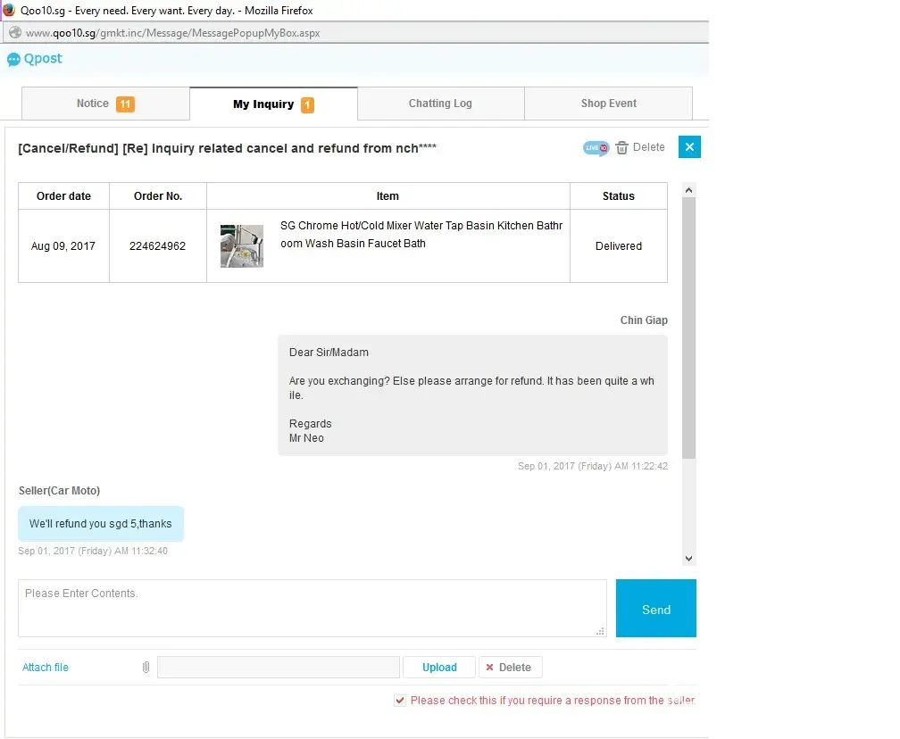 Very Disappointed With Qoo10 SupportSep 04, 2017(Mon)
