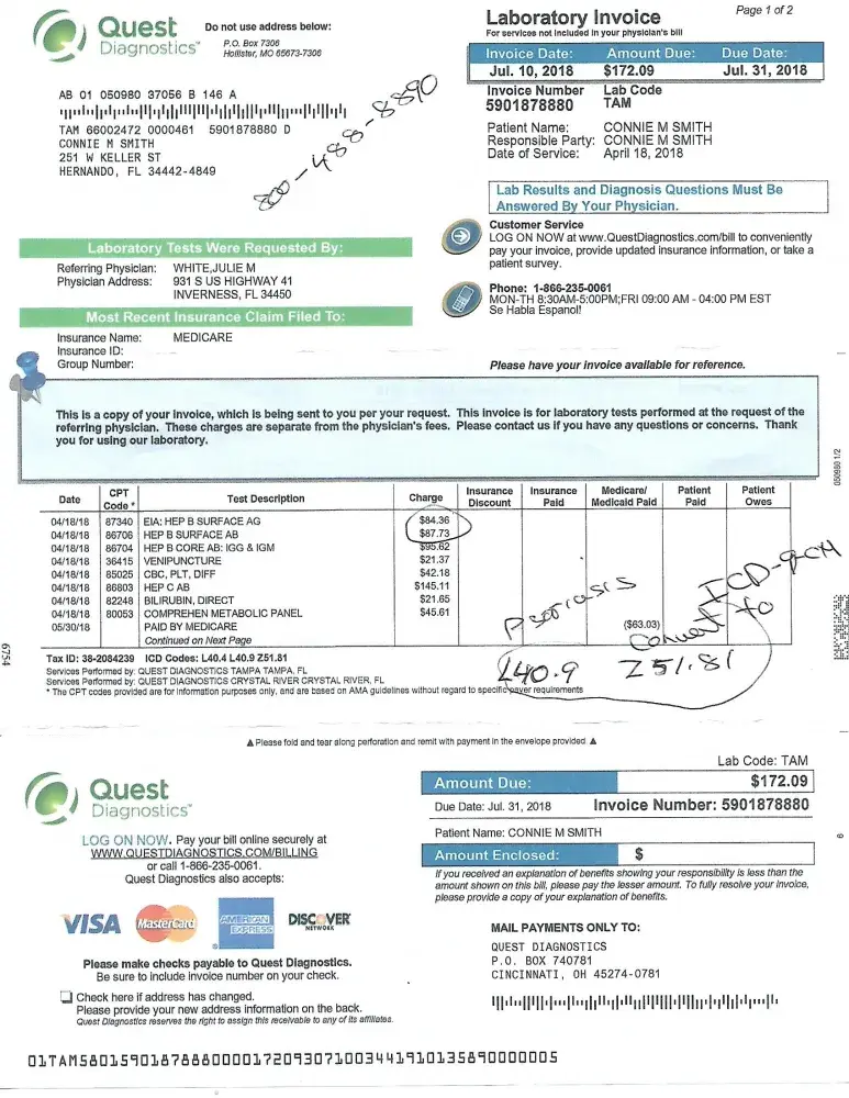Quest Diagnostics billing 11 times more than what was initially communicated