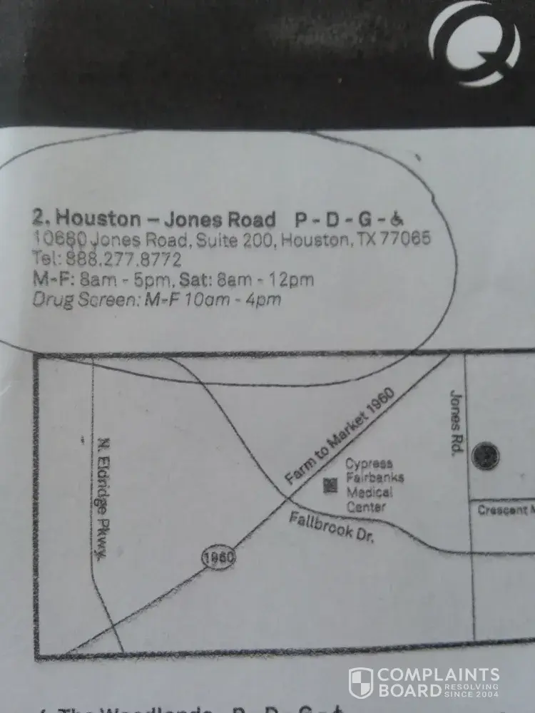 I would report this to Quest Diagnostics, but they don't provide for complaints outside of medical or billing.