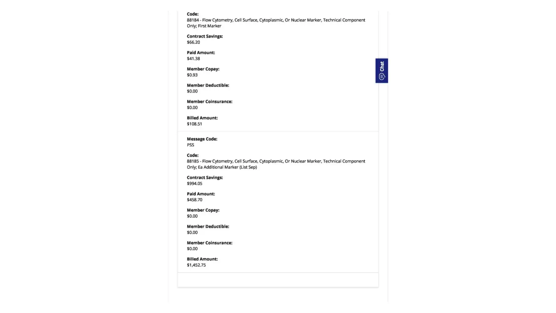 Associated Pathologists billed my insurance company, HPN, for $1733.26 for service done on April 21, 2022. This bill was divided into two amounts: $1561.26 and $172.00. My insurance company paid the contracted amount on May 19, 2022. My copayment, which I paid, was $15.93.