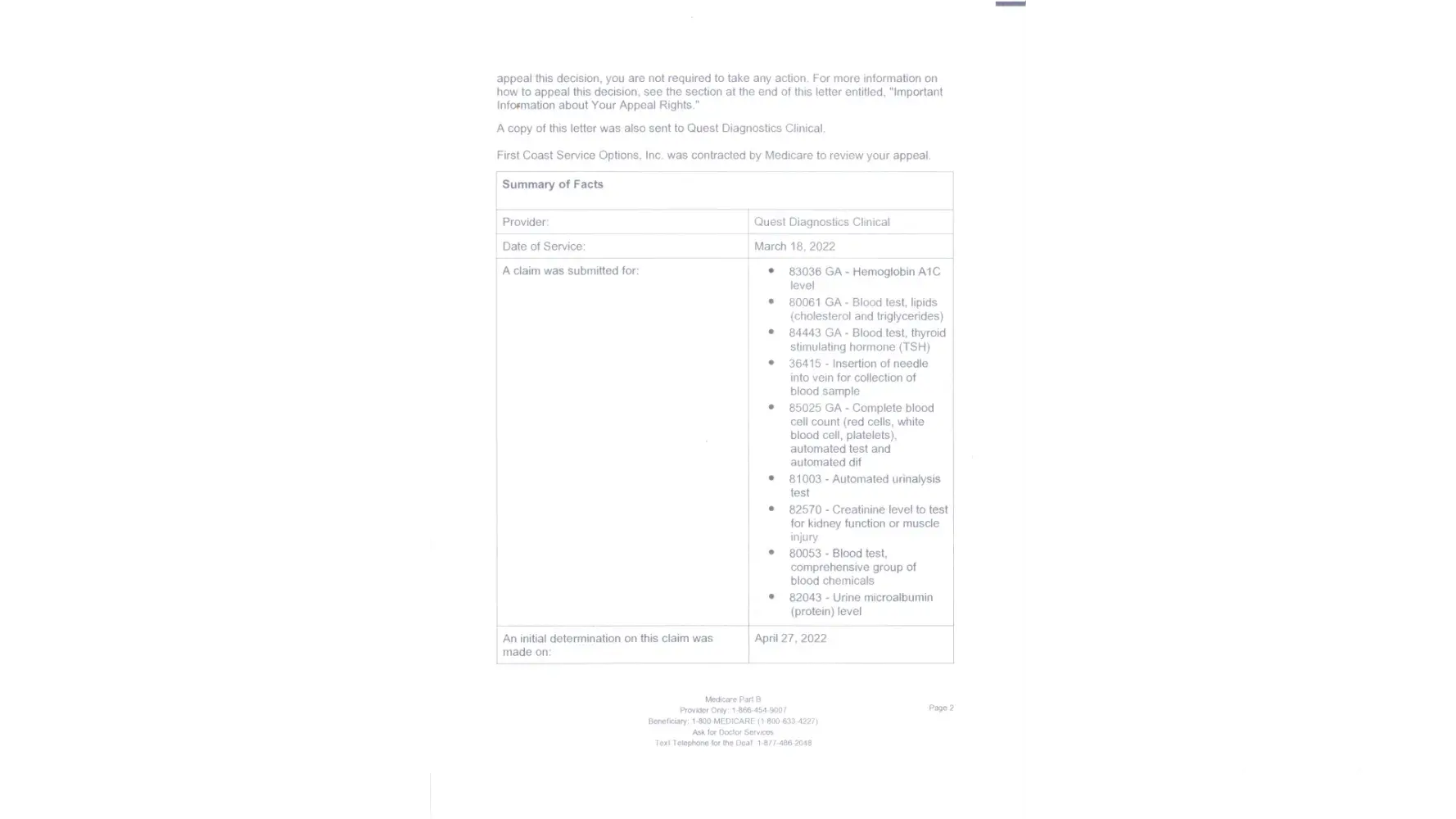 Desired outcome: Quest to correct the codes on the Lab Work and Contact both Medicare and my Medical Doctor's billing department to straighten all this out!