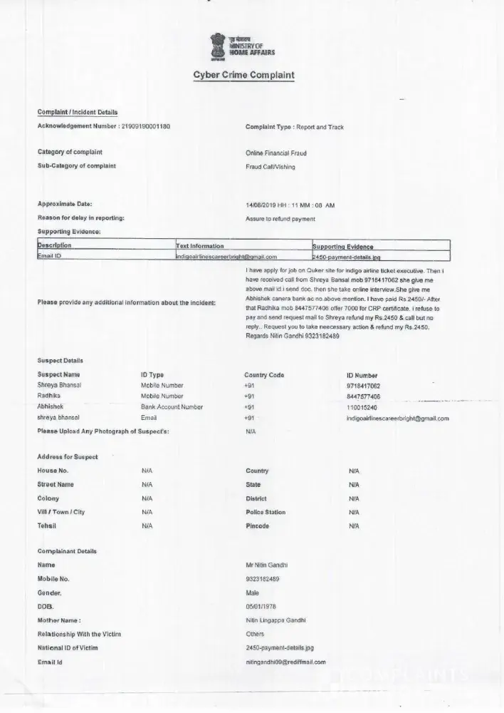 During the second round of the application process, I received a call from a man named Mahesh Pathak, who claimed to be an HR representative from HDFC bank. He informed me that my interview had gone well and that I needed to pay Rs. 4500 for document verification. I requested that I pay the amount after my joining, but he refused and threatened to cancel my application if I did not pay immediately.