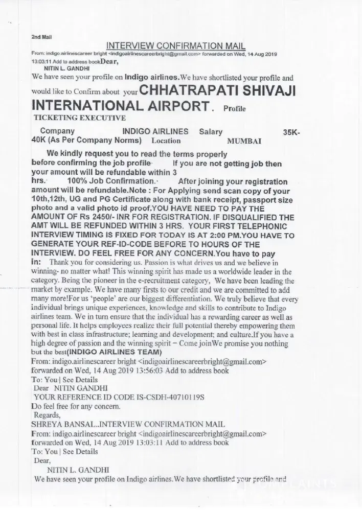We were strictly against additional payment to this fraud company, as we had already burnt our fingers by paying them Rs. 10360.