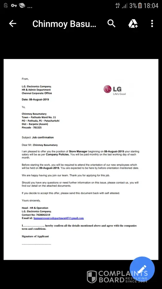 I am chinmoy basumatary from assam I had applied in LG company in quikr, then after they called me that u have to give interview. After selecting in interview they said that u have to pay the payment first then u will get a joining letter in the company and they have given their account number: 53370100001956, account holder name : Akash, IFC CODE: BARB0HARINA, Bank of Baroda. After I know that this is fraud agency. So I request you to please take some action against them