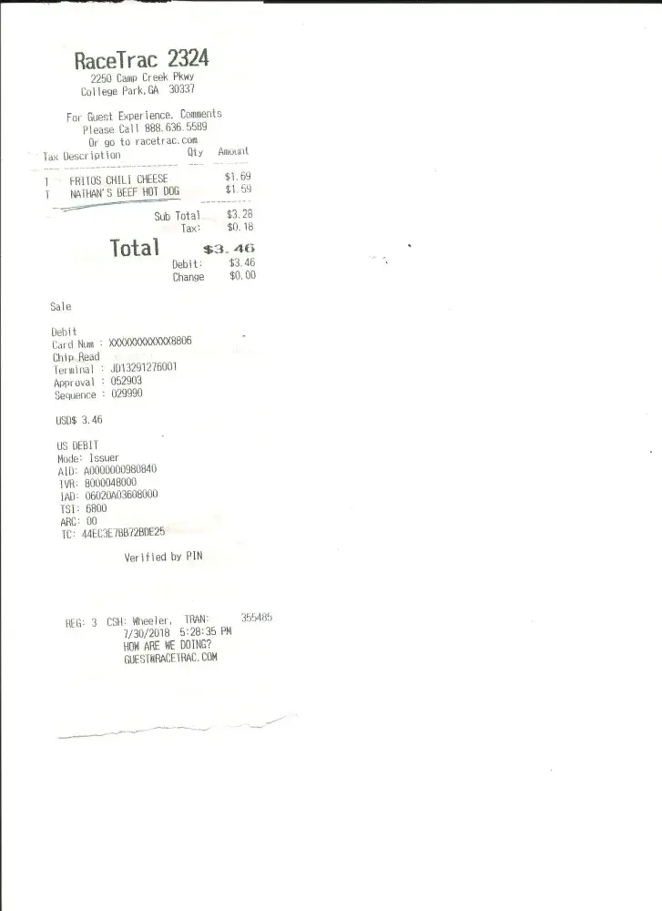 To top it off, I was charged for a hot dog and not a Chicken Taquito Really! I am adding the receipt. I have never been treated so badly at a Race Trac before until this tag-team duo!