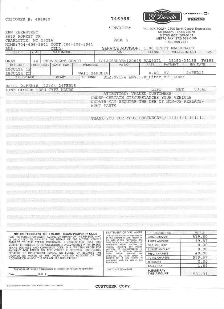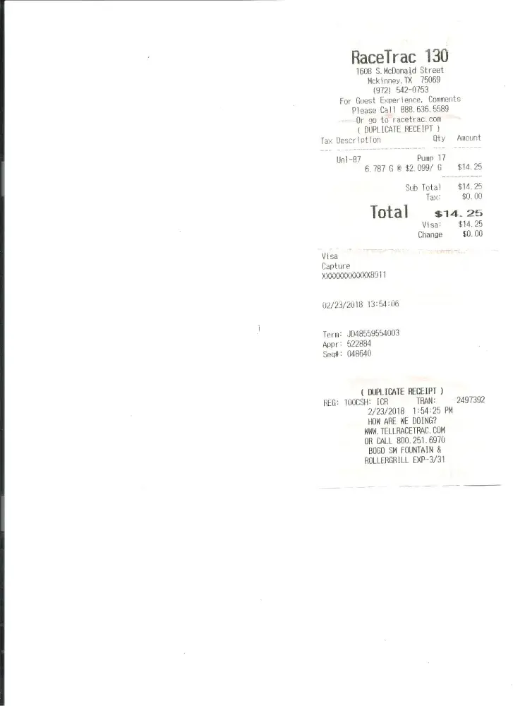 I drove 1100 miles from Charlotte, NC to McKinney Texas. I filled my tank at the RaceTrac station located 1608 S. McDonald Street, McKinney, Texas 75069.