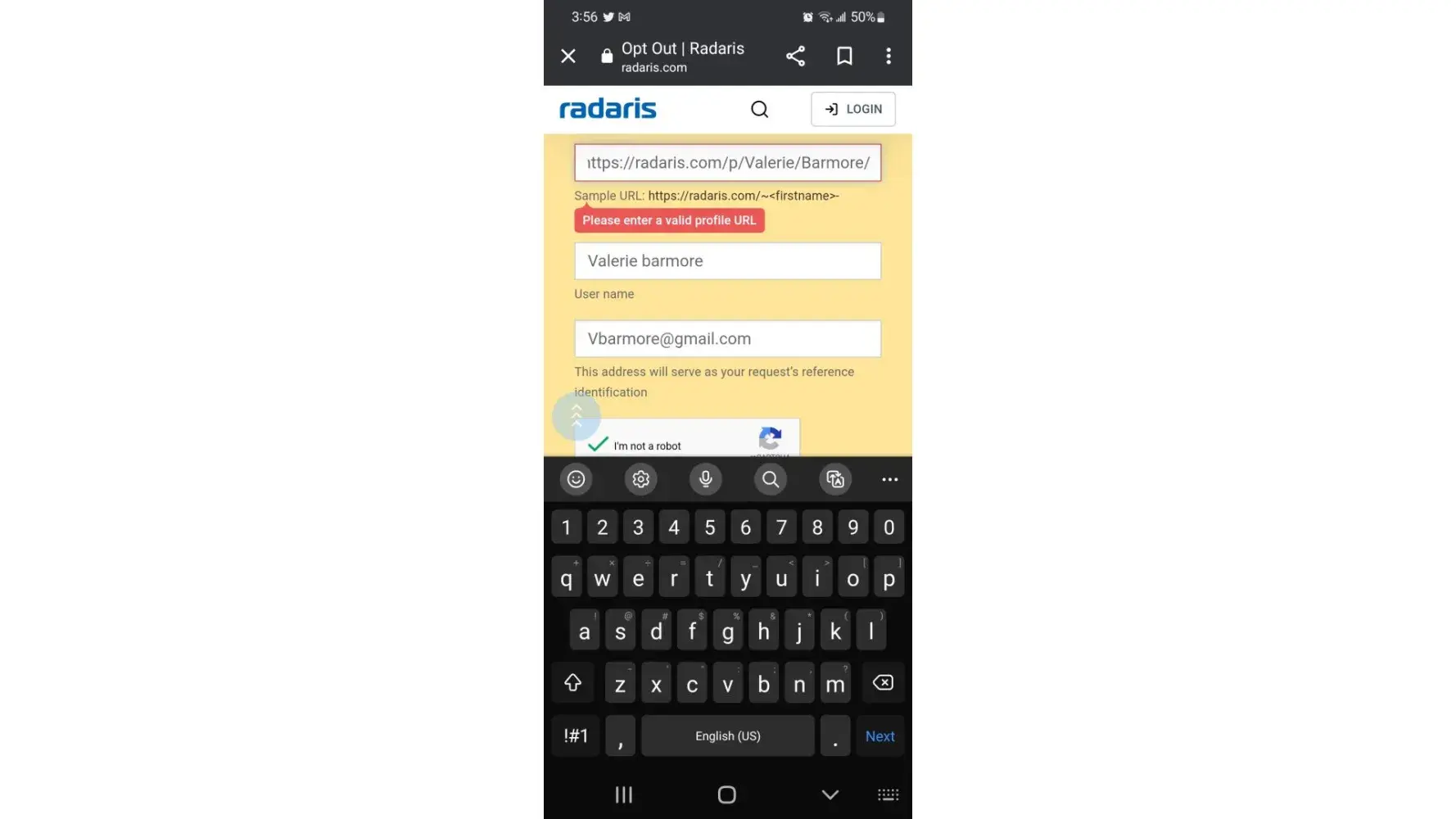 Radaris will not remove my online profile. I have sent them multiple emails and they keep sending me a link that requires a code be sent to your phone. they tell me to login to my account which is terrible that you have to create an account. Then i provide my cellphone number and they text a code. The code does not work and keeps giving me an error. Please see attachment below. This is my profile. I need them to remove my profile asap. I have tried multiple times.