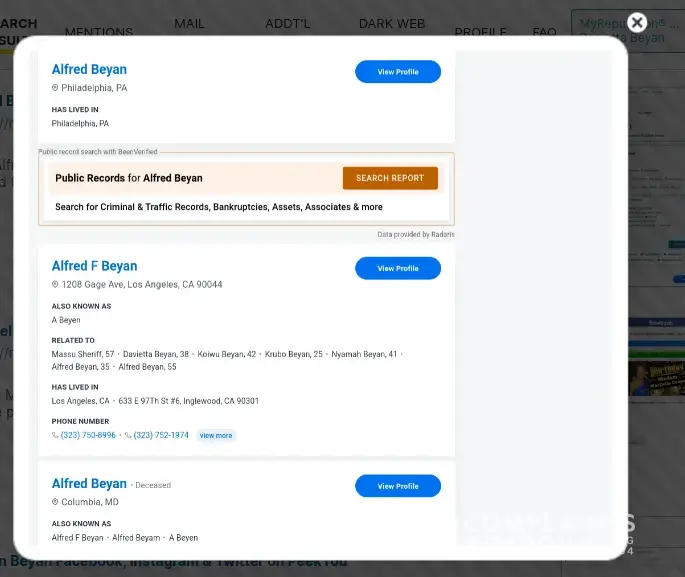 This company is a scam! They refuse to remove your private information, which can be disastrous and dangerous to stalkers with evil intent, much like radar is themself. The guy who owns this company is a con and get his jollies off by making innocent people suffer. If you complain or should you have the audacity to remove your information, they will keep adding more and more info, often which is not true! Evil to the core!
