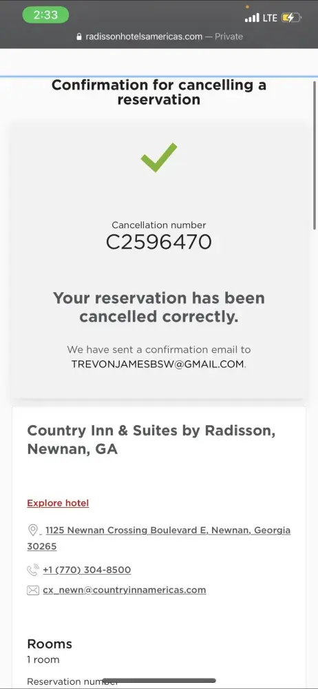 Desired outcome: I already filed a dispute on my credit card, I just want the money back for the room that was cancelled and the other charge that I'm not aware of.