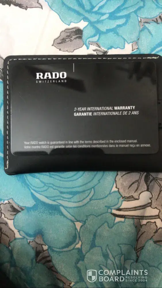 - While Rado Watch has a high level of trust, our investigation has revealed that the company's complaint resolution process is inadequate and ineffective. As a result, only 4% of 44 complaints are resolved. The support team may have poor customer service skills, lack of training, or not be well-equipped to handle customer complaints.